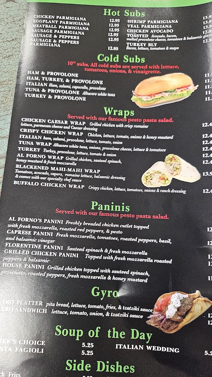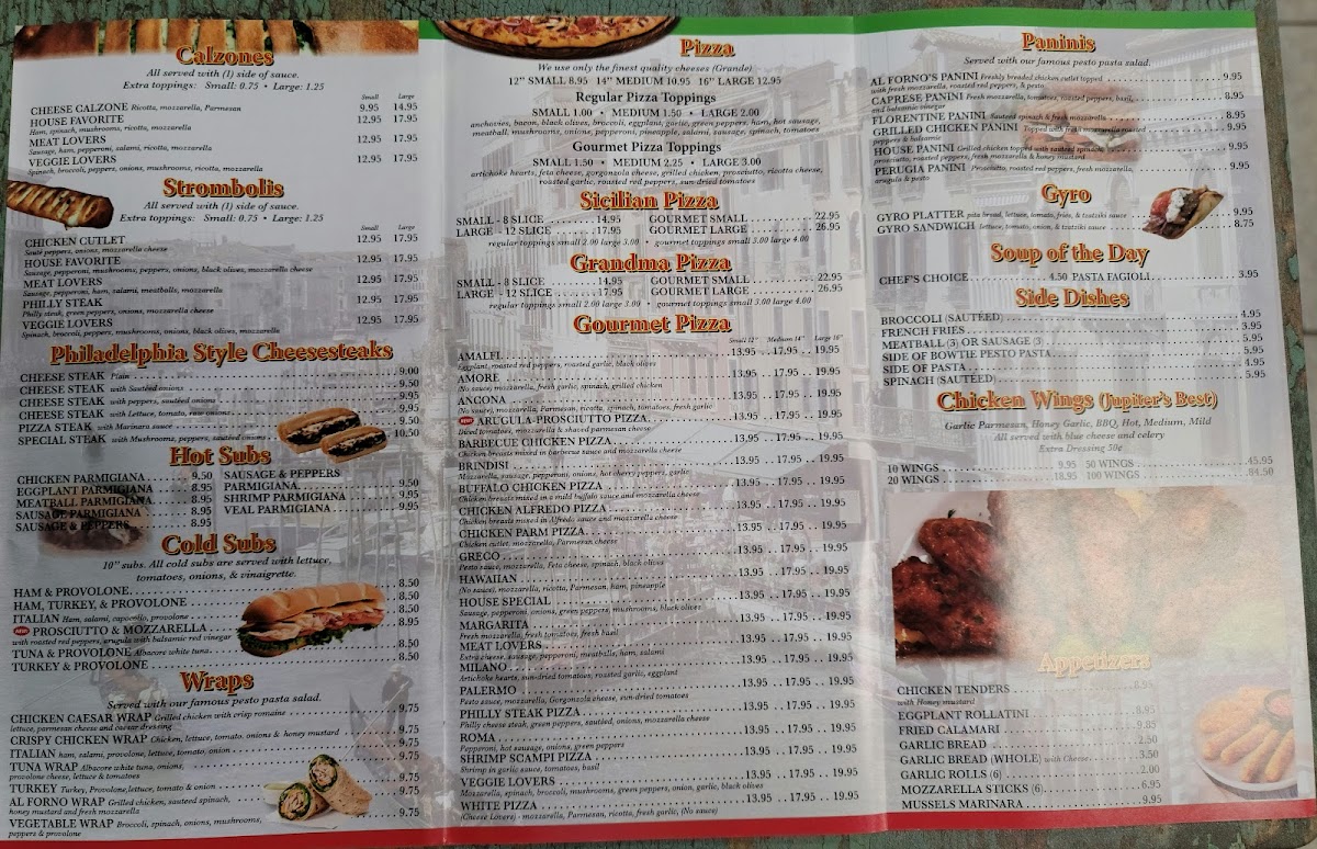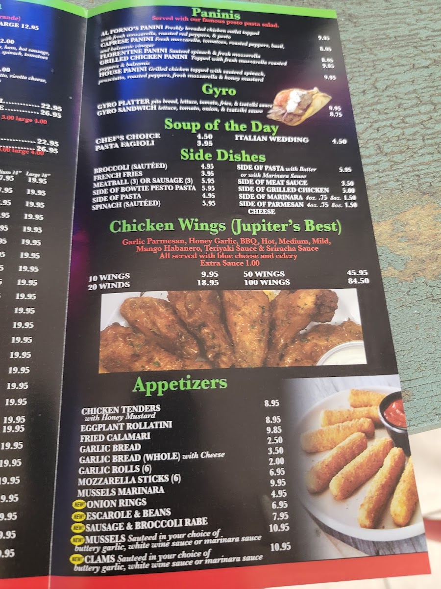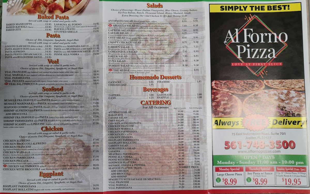 Welcome to the Al Forno Jupiter Menu, where a rich blend of flavors meets the warmth of home-style Italian cooking. Situated at 75 E Indiantown Rd, this cozy gem offers a delightful array of freshly made pizzas, pastas, and savory dishes that transport you straight to Italy. Whether you're craving a classic Margherita pizza, a hearty lasagna, or a lighter seafood pasta, each dish is crafted with the finest ingredients and a touch of love. The inviting atmosphere and laid-back vibe make it the perfect spot for a casual meal with friends or family. Indulge in the bold, rustic flavors of the Mediterranean as you explore the full range of options on the menu, each one designed to please even the most discerning palate.